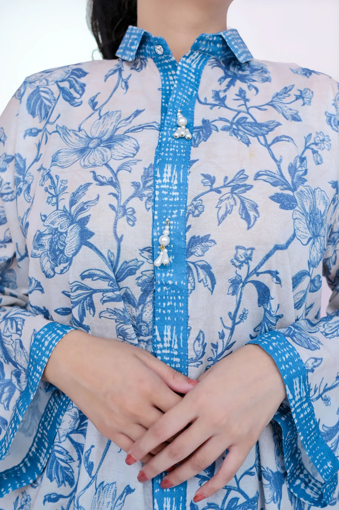 Bright and effortlessly chic, this Cerulean Blue Ascot lawn suit by Inshu is your go-to choice for sunny days and graceful occasions. Crafted from lightweight summer lawn, it features delicate digital floral prints that bring a refreshing, feminine charm to the rich blue canvas.